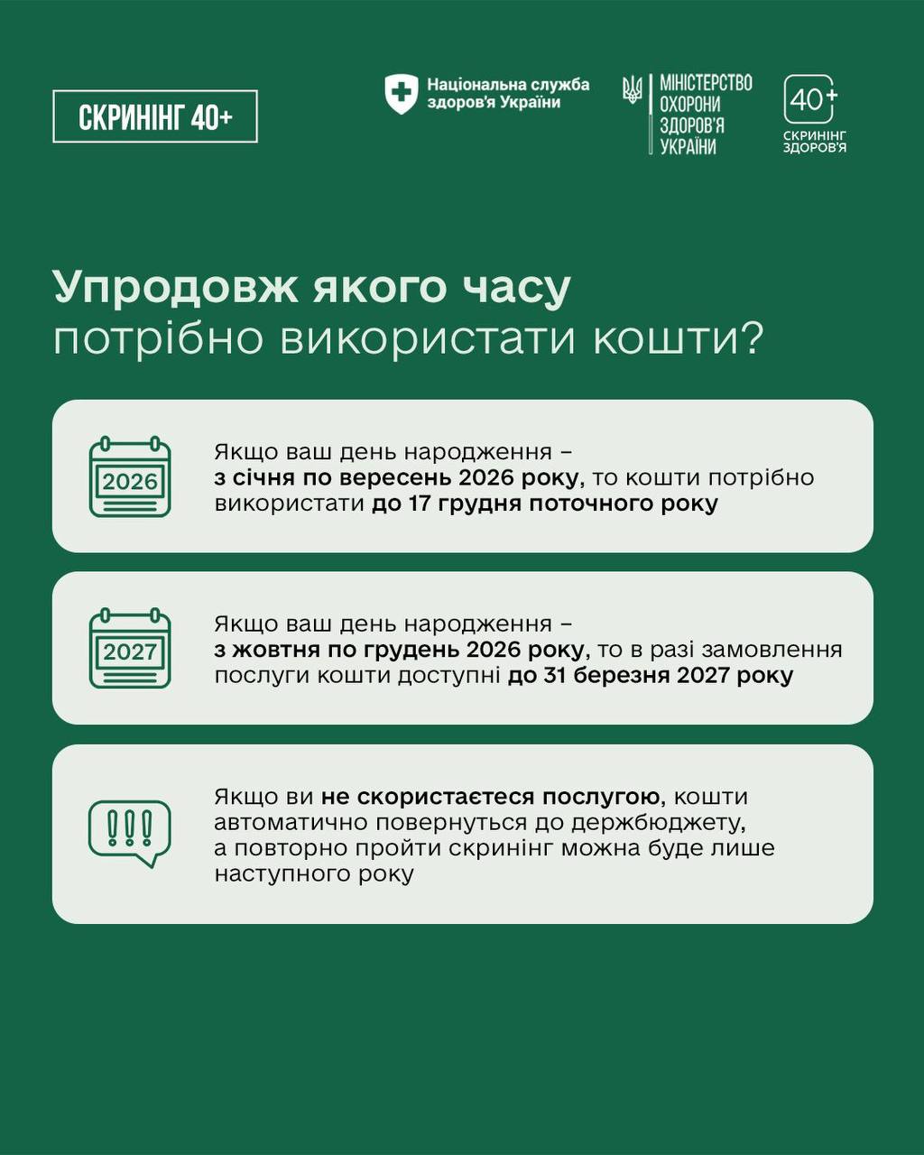 Більше про те, коли ви отримаєте запрошення на проходження Скринінгу здоров’я 40+, як оформити послугу та в який термін — розповідаємо у каруселі.